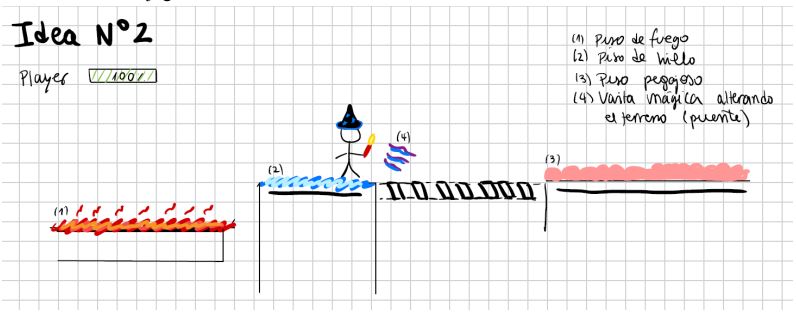 Estamos desarrollando un juego de plataformas basado en la modificación de terrenos. La jugabilidad estará centrada en cómo los distintos terrenos afectan al jugador y cómo este puede transformarlos para progresar en el nivel.